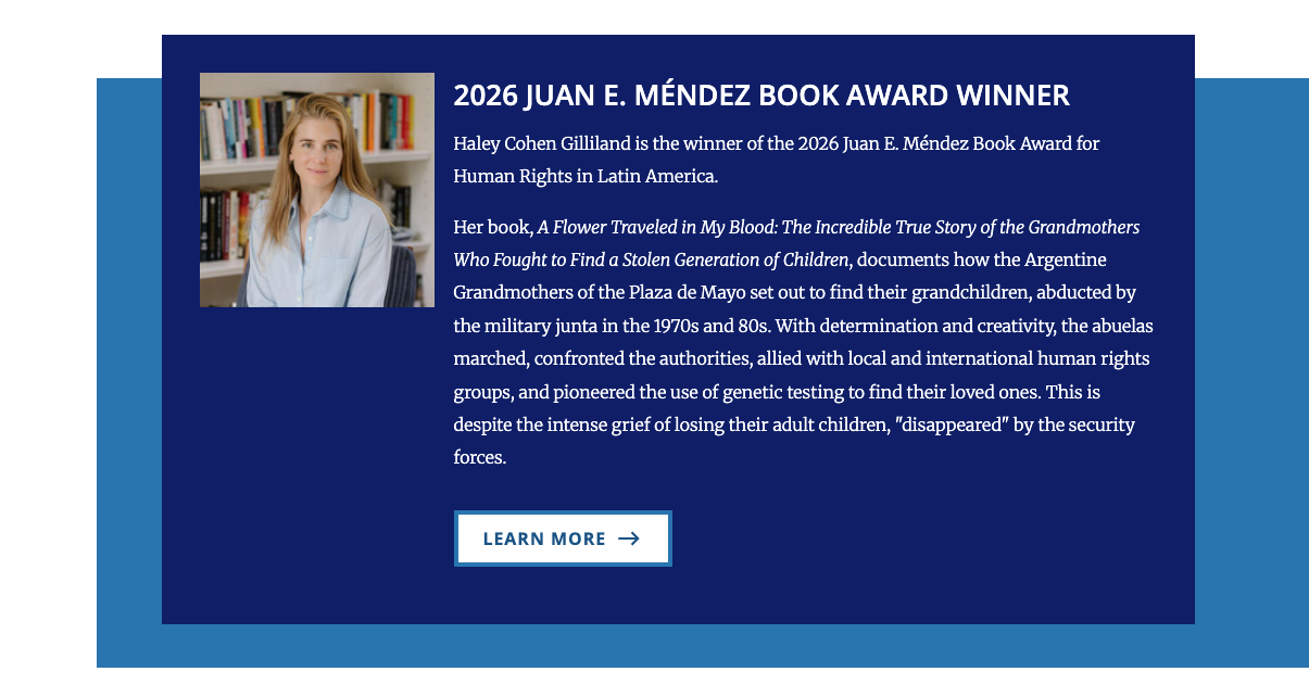 WINNER OF DUKE UNIVERSITY’S 2026 JUAN E. MÉNDEZ BOOK AWARD FOR HUMAN RIGHTS IN LATIN AMERICA